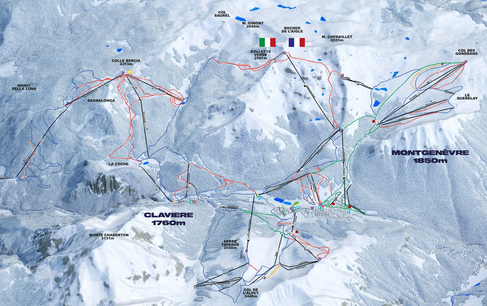 Ci-dessous le plan des pistes du domaine Vialattea (© contributeurs OpenStreetMap)